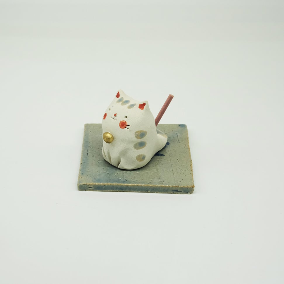 背中にはお香を立てられる穴があり、敷台付きでそのまま飾って楽しめます。