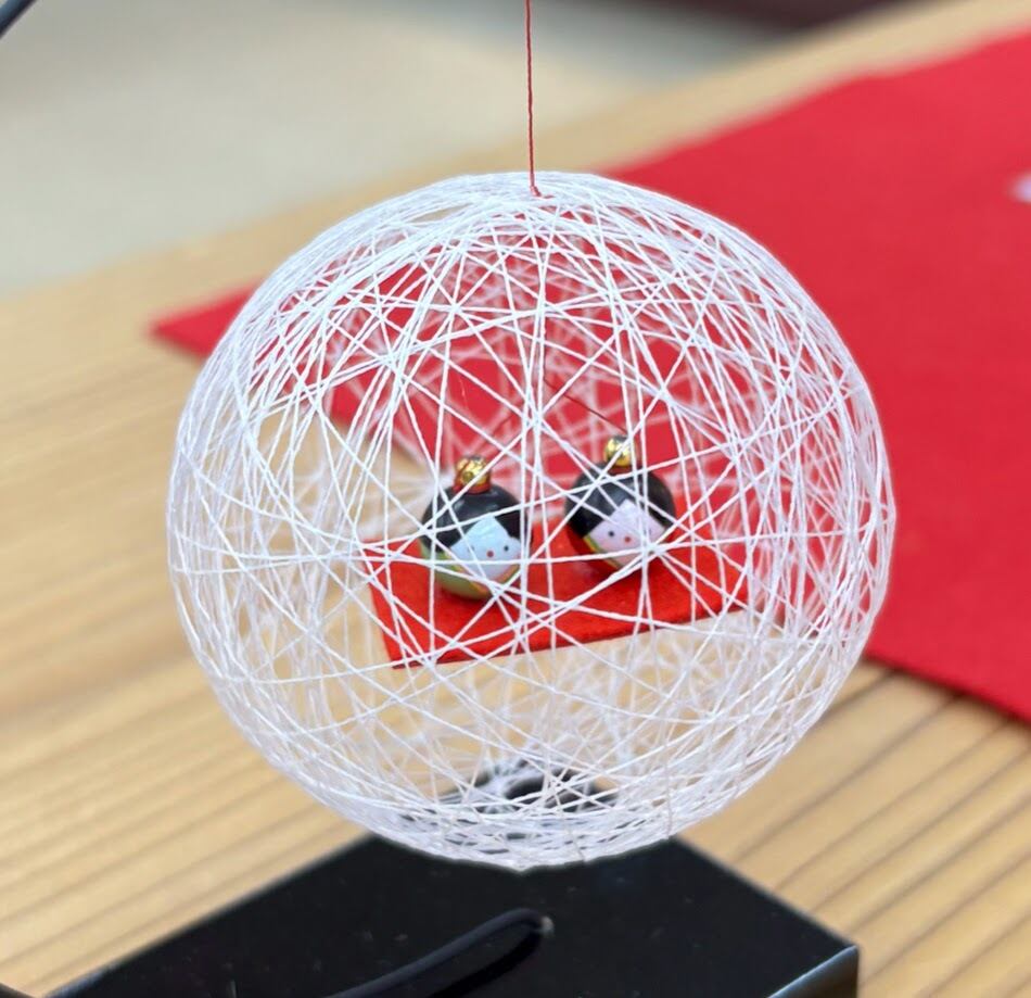 風に揺られて、ゆらゆらと回りながらさまざまな表情を見せてくれるモビール「絹てまり」。やわらかな動きと絹ならではの上品な質感が、空間に穏やかな彩りを添えてくれます。