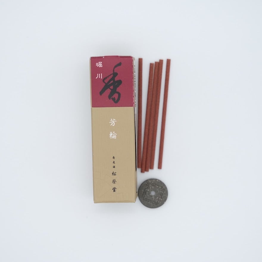 松栄堂の一番人気のお香です。白檀の甘みを強調したまろやかな香りです。使いやすいスティックタイプです。専用の香立がついていますので、皿などの上ですぐにご利用いただけます。